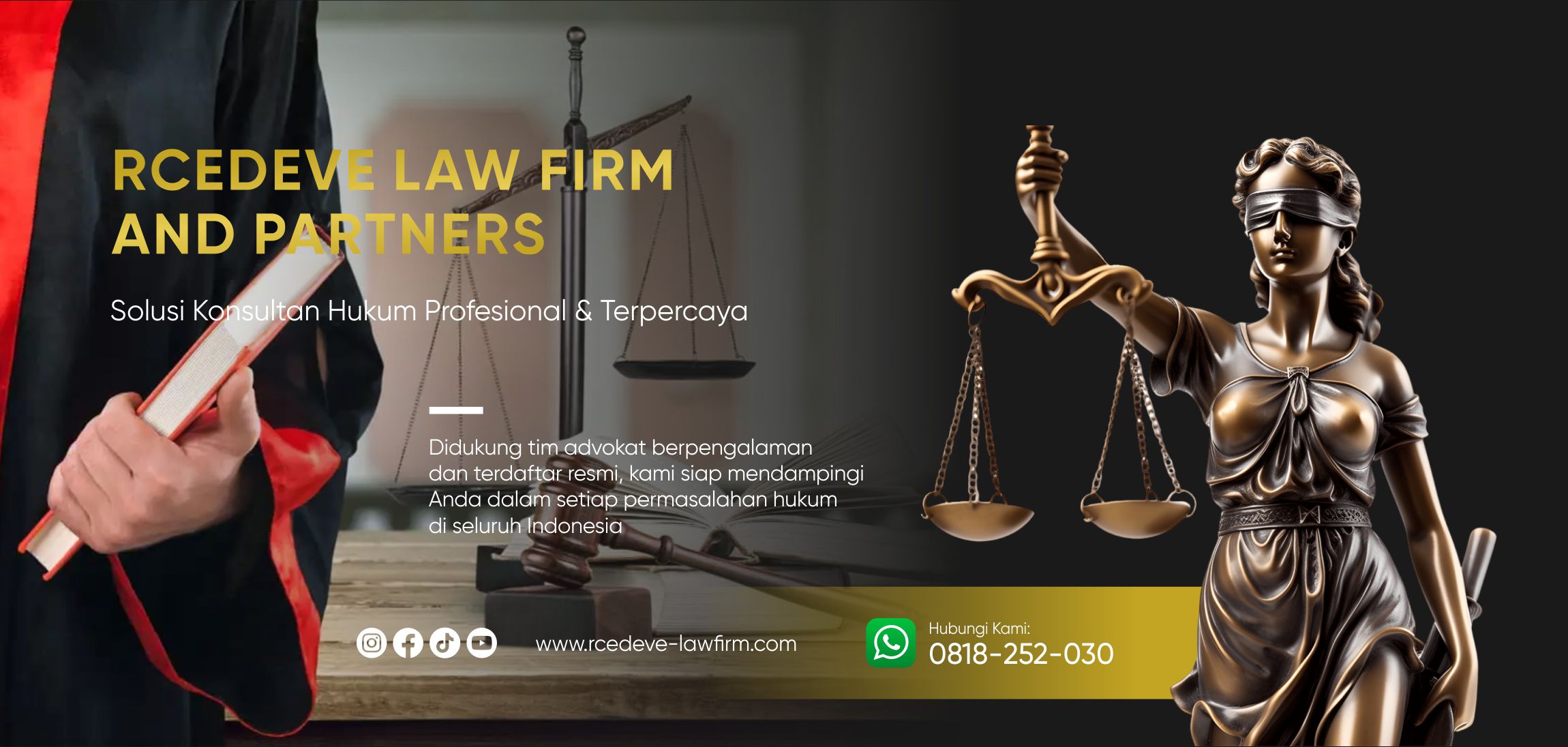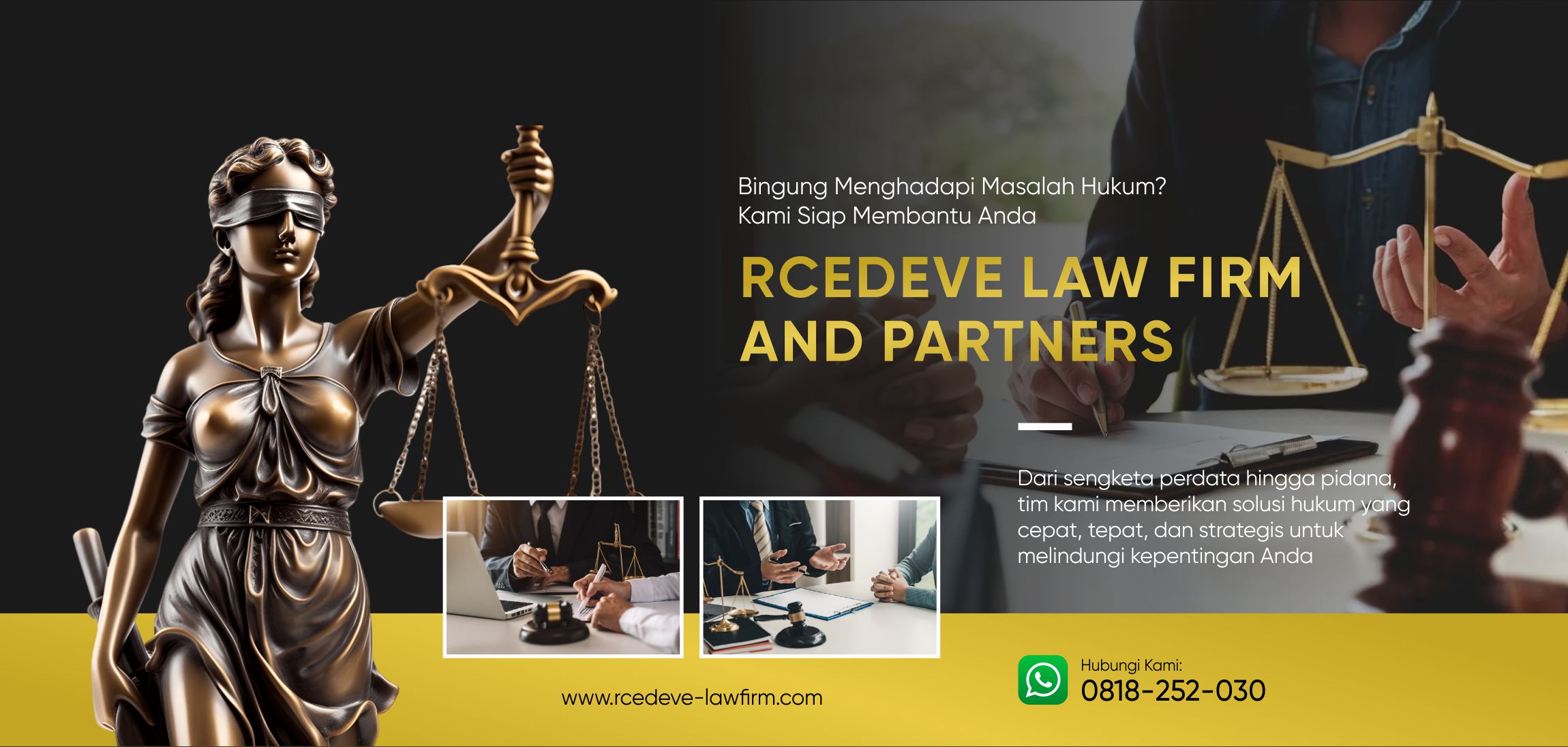 RCEDEVE LAW FIRM AND PARTNERS menyediakan berbagai layanan hukum yang komprehensif, mulai dari pendampingan litigasi hingga penyelesaian sengketa non litigasi. Didukung oleh tim advokat dan paralegal berpengalaman, kami siap memberikan solusi hukum yang tepat, strategis, dan terpercaya untuk individu maupun perusahaan di seluruh Indonesia.